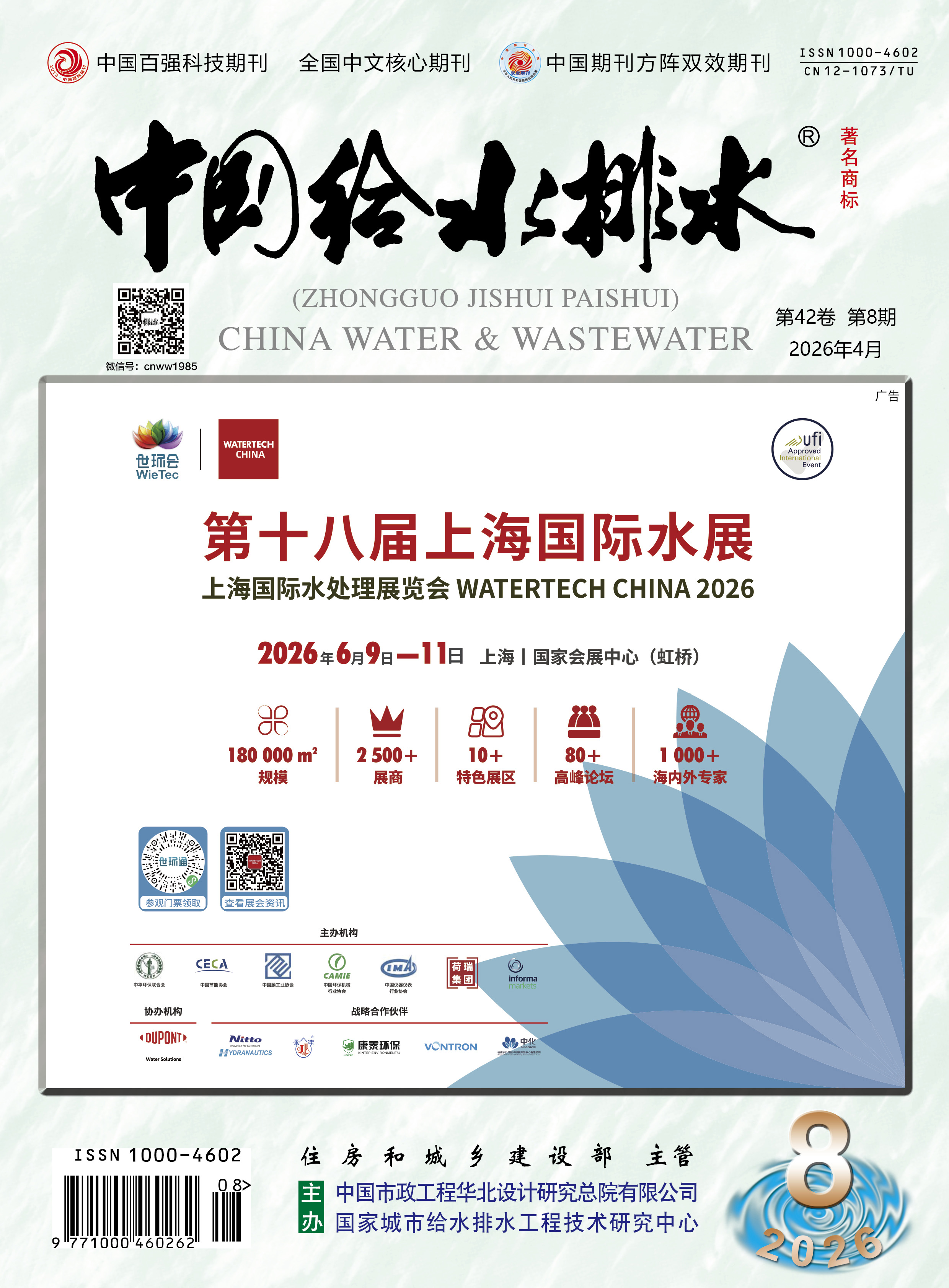 本杂志创刊于1985年,是国内外公开发行的技术性刊物。本刊是面向全国给水排水和环境工程界的专业性科技期刊,是中国建筑类核心期刊和中国科技论文统计源期刊,具有较高的理论导向性和较强的工程实践性,在国内享有盛誉,被称为中国水行业的"首席杂志"。读者对象主要是自来水、市政排水、建筑给排水、水与废水处理等行业的设计、科研、教...